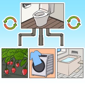 4,トイレ、洗濯排水などの汚物下水は完全に浄化して二次水道水に利用する